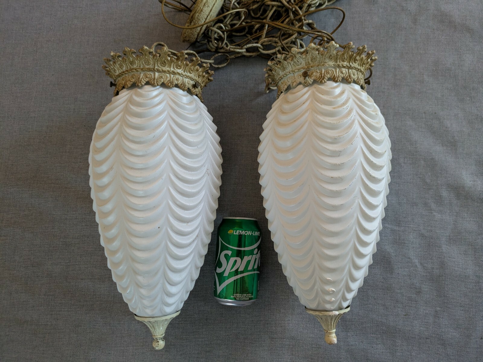Mcm Blanc Festonnée Larme Double Swag Suspendu Lampe Light Moe Thomas Ind