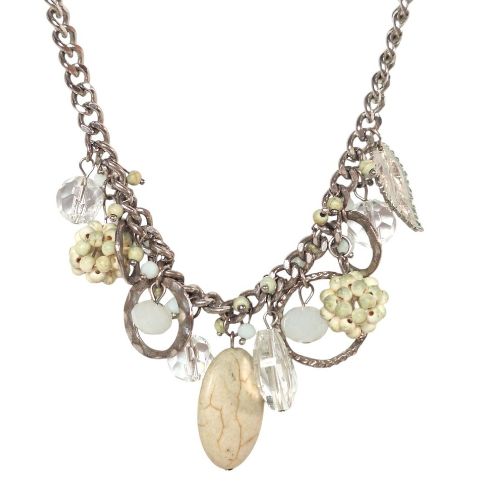 Vintage Charm Gem Stone Feather Boho Statement Necklace Womens Costume Jewelry