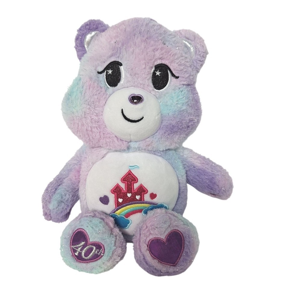 Care Bears Care A Lot Bear 40th Anniversary Plush Rainbow Purple Pastel 13.5"