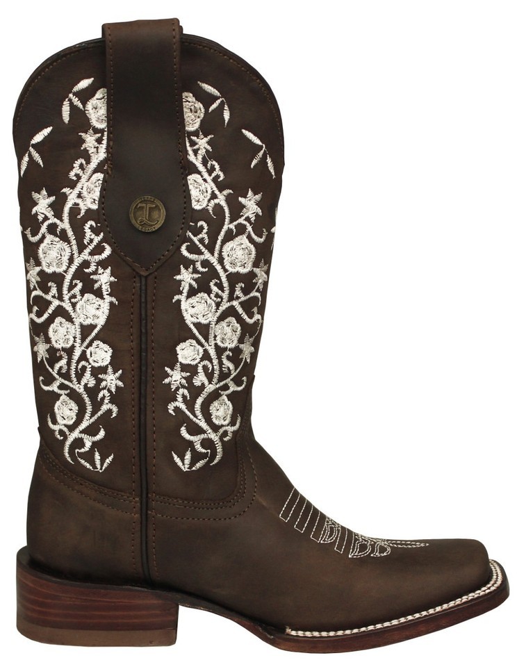 Womens Cowboy Boots Western Wear Brown Leather Floral Embroidered Rodeo Dress