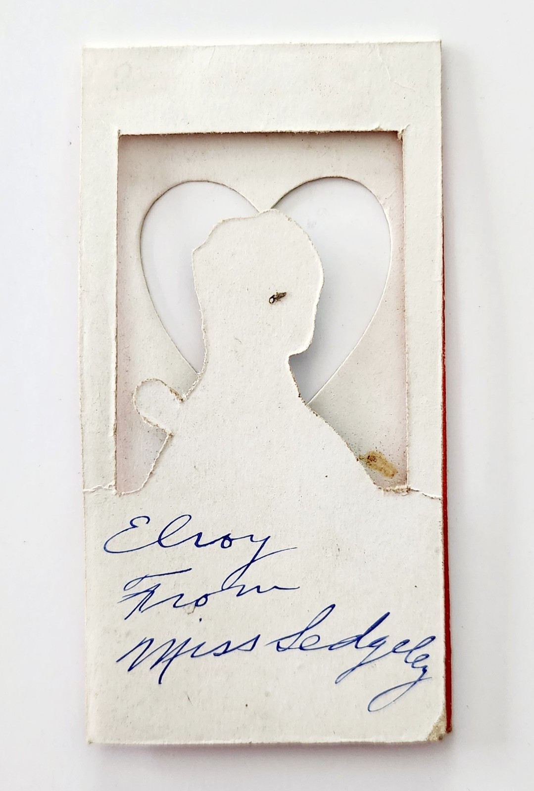 1960s Valentine's Day Greeting Card Lithograph Girl In Blue Dress Vintage CHXB