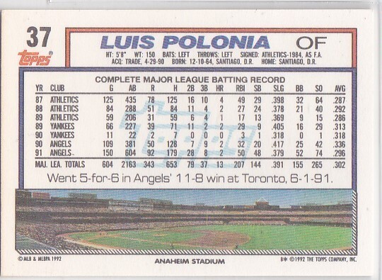 M) 1992 Topps Baseball Trading Card - Luis Polonia #37
