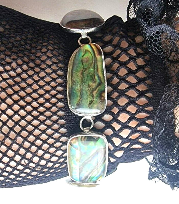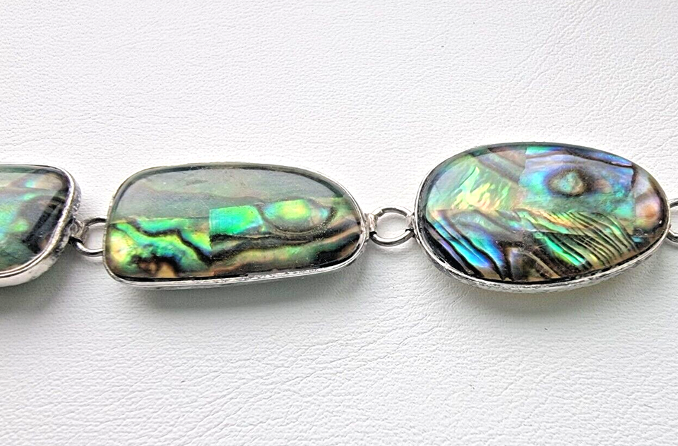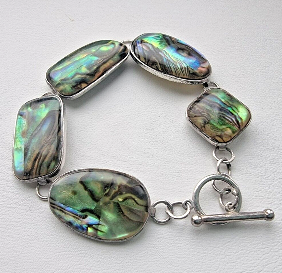 VINTAGE LUCAS LAMETH 925 STERLING SILVER RAINBOW ABALONE SHELL BRACELET