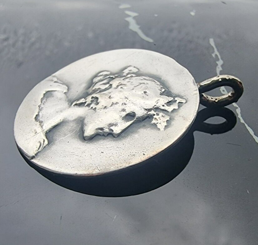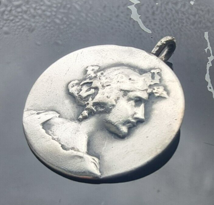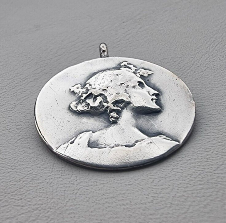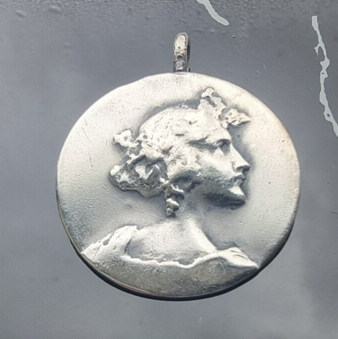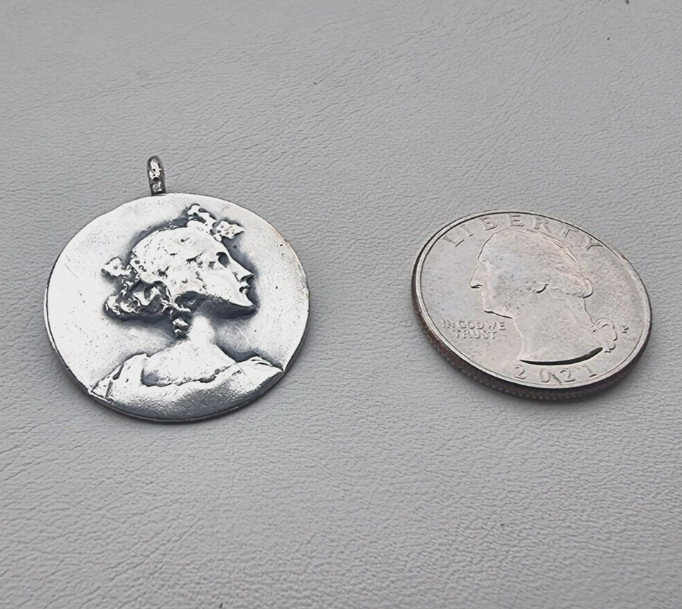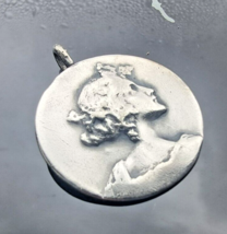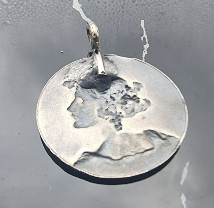 ANTIQUE 925 STERLING SILVER HAND MADE LADY REPOUSSE FACE PROFILE FACE pendant