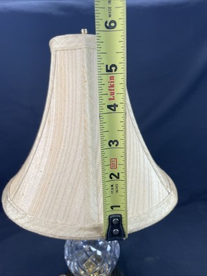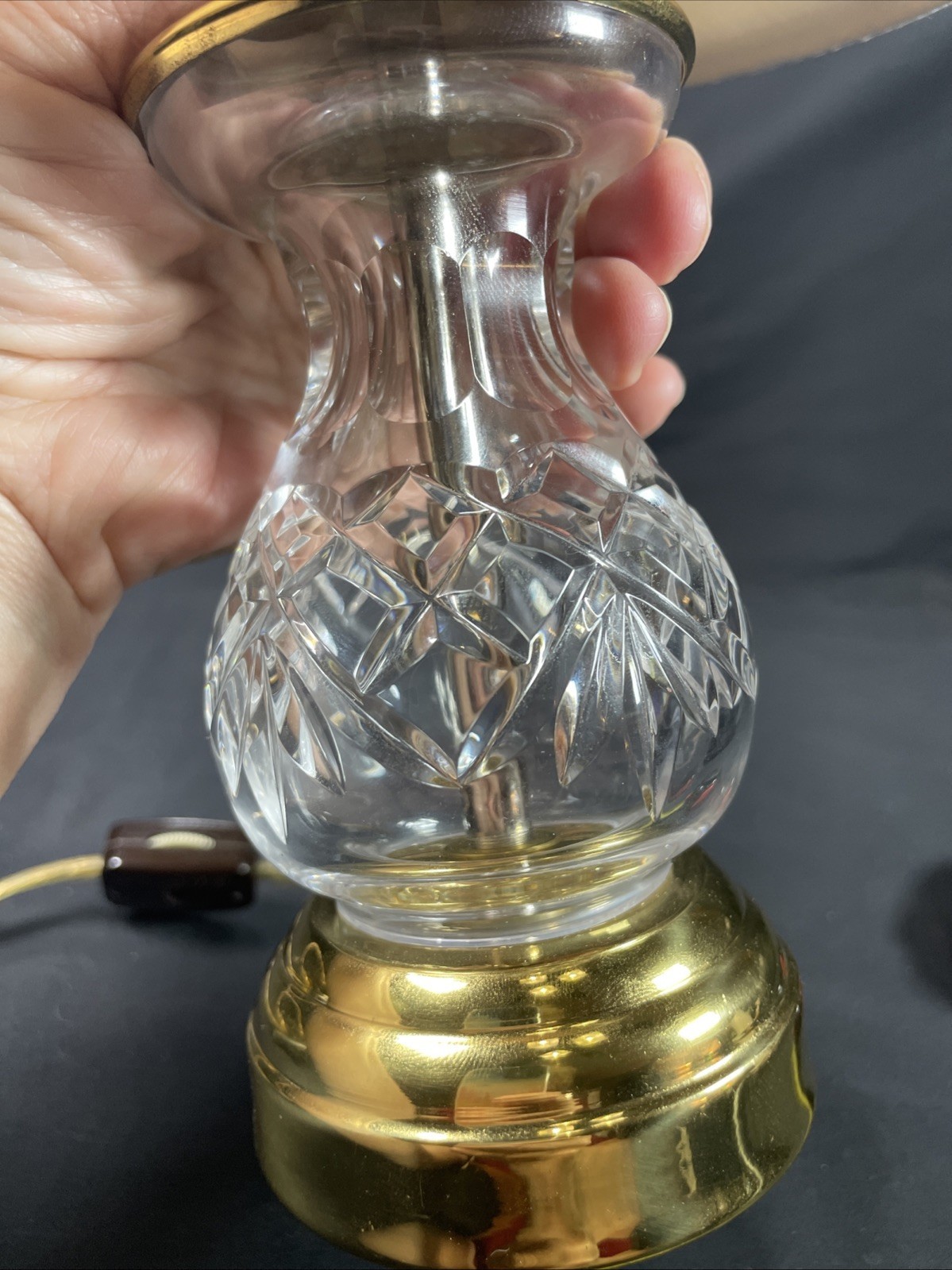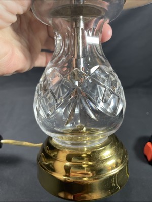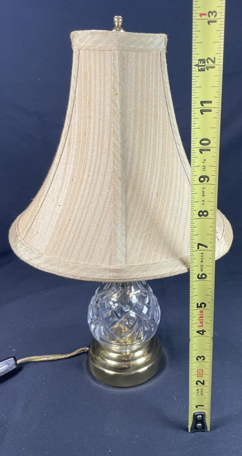 This Vintage Electric Table Boudoir Lamp stands at 13 inches tall with a clear glass shade, giving it a classic and elegant look. The lamp is corded and features a gold cord, adding a touch of luxury to its design. As an original vintage piece, this lamp is a unique collectible item that would make a stylish addition to any room. The glass material adds a touch of sophistication to its vintage charm, making it a timeless and charming lighting fixture for any collection.