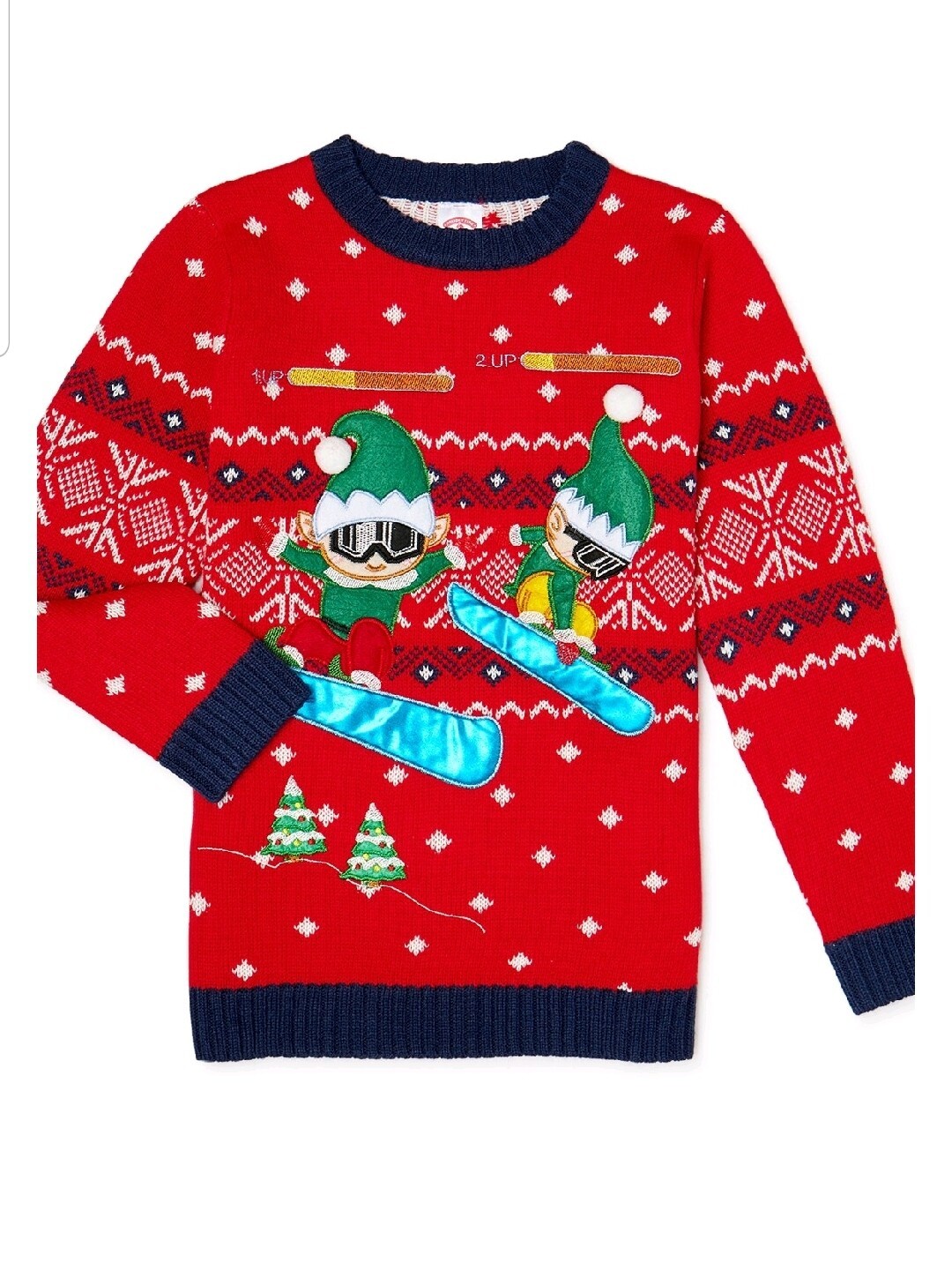 Holiday time Kids Christmas Ugly Sweater Santa Elf Snowboarders Boys