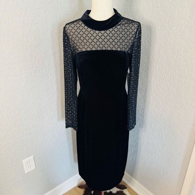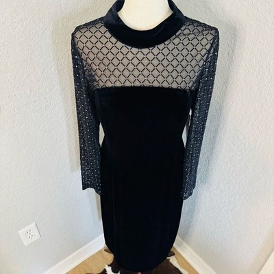 Eliza J Beaded Yoke Mixed Media Long Sleeve Sheath Dress, Black, Size 14, NWT