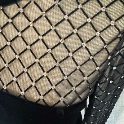 A glittering grid embellishes a sleek velvet cocktail dress cut to a beloved midi length and designed to inspire toasts.