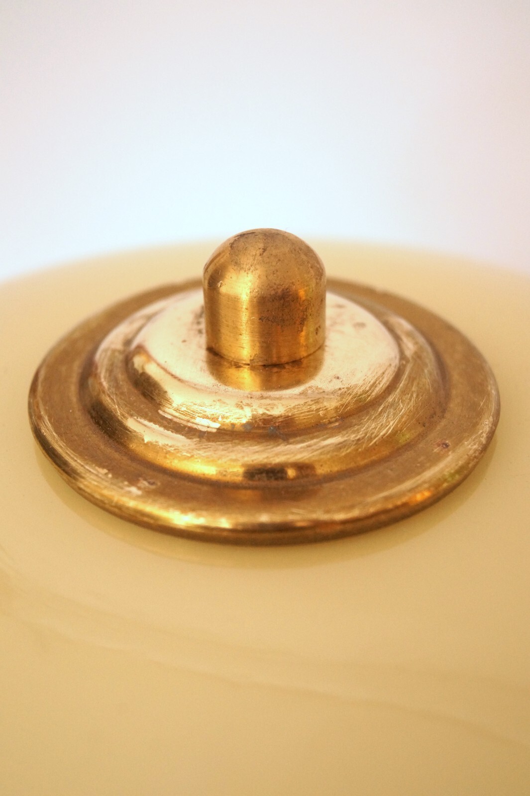 A question of sustainability! It is a used and/or ancient object that can have visible signs of age and use despite processing and cleaning and a valuable patina. If you are looking for an absolutely "new" and high-gloss lamp in the hardware store style, our offers are not the right thing for you! With an article from our offer you purchase a lamp that has been in the recycling circuit for many decades. The lights we built were also built from ancient or used substance. Only all components of the electrics are new. With a purchase, you set a clear sign of sustainability. Our luminaires are all unique and stand up to the same appearance of the same appearance of the famous "brass lamps from the capital", where ultimately every lamp is available a thousand times. You can only get individuality and real uniqueness from us! A lamp from our manufactory guarantees you elegant appearance, quality and uniqueness.