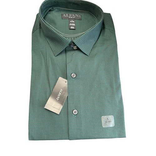 Alfani Men's Slim Fit Houndstooth Dress Shirt Green Black-L16-16.5 32/33