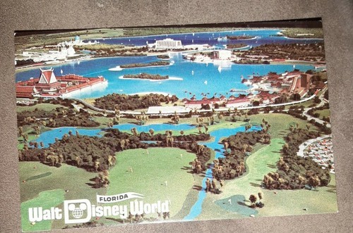 Walt Disney World Pre Opening Postcard Aerial view Bay Lake Resorts Vintage 1971