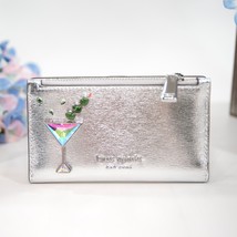 Kate Spade Shaken Not Stirred Silver Leather Small Slim Bifold Wallet NWT