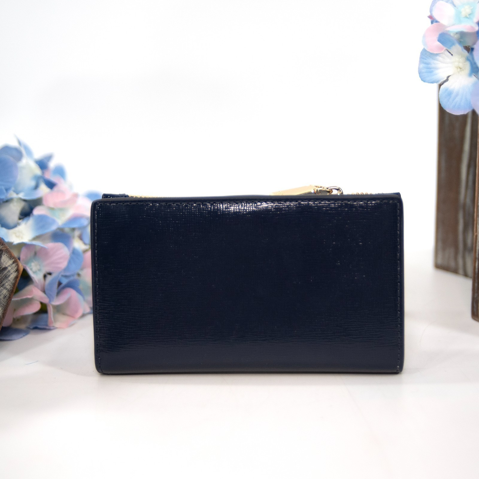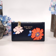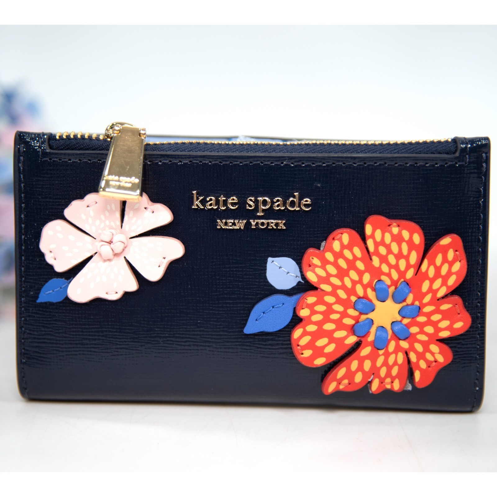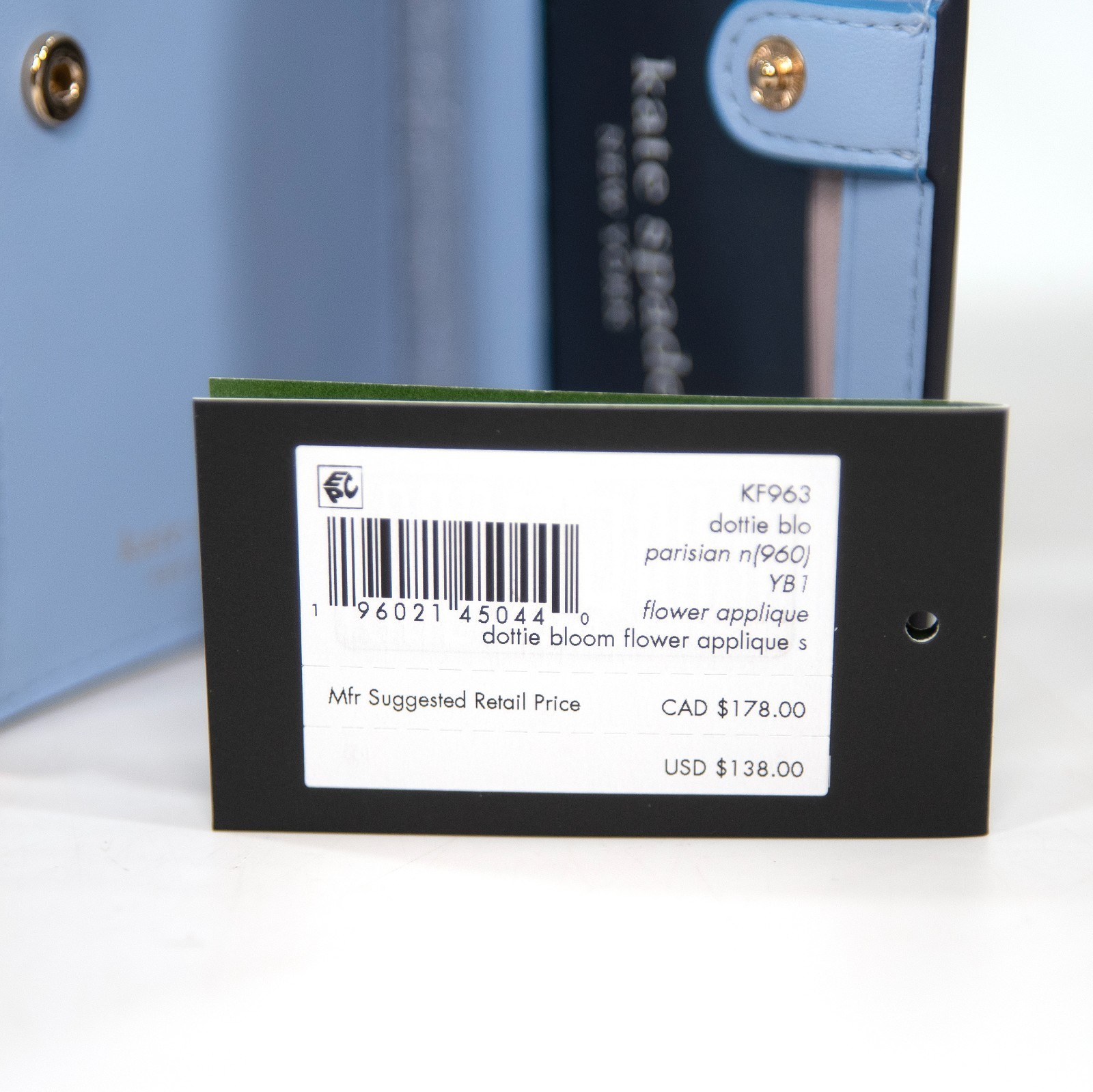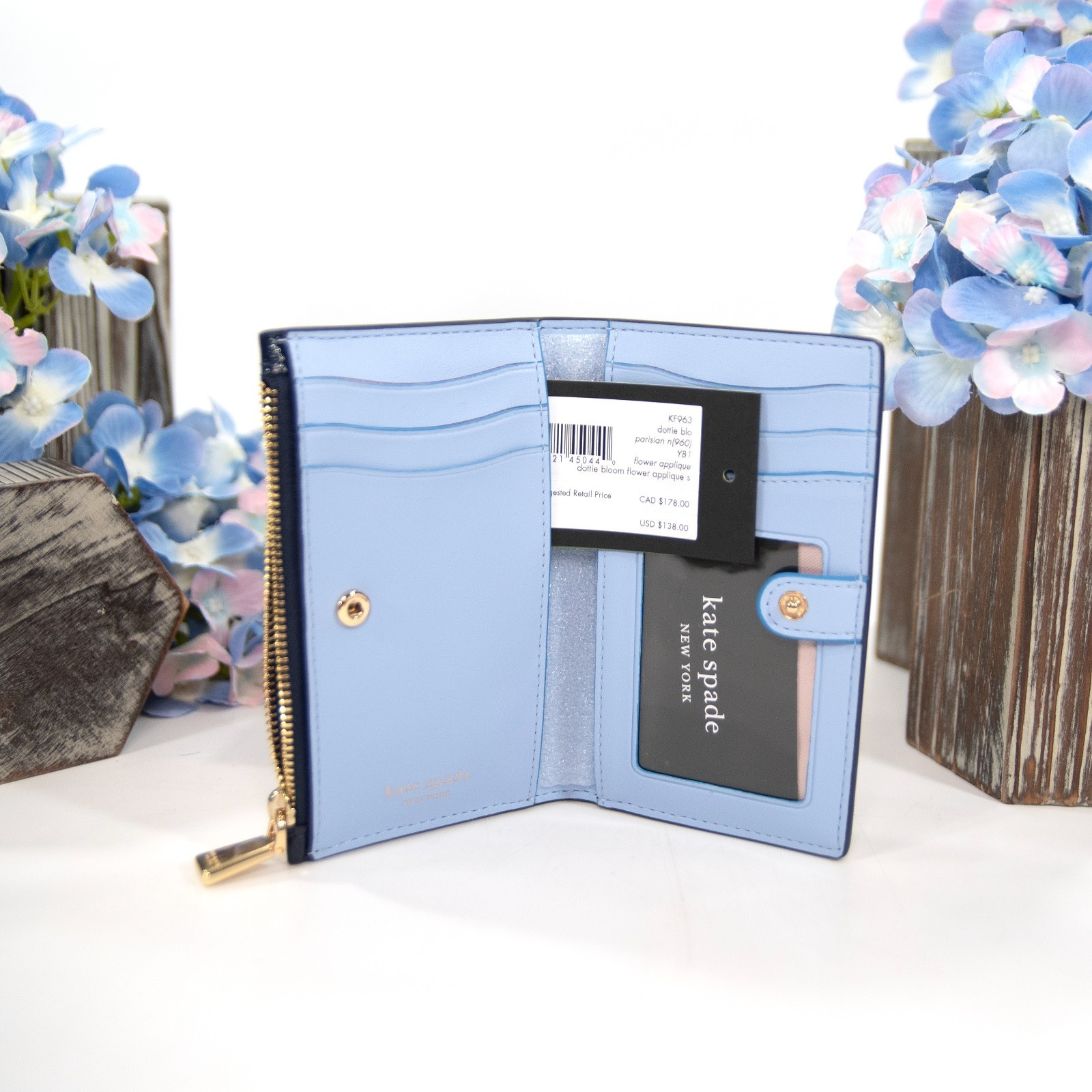 Kate Spade Dottie Bloom Parisian Blue Flower Leather Slim Bifold Wallet NWT