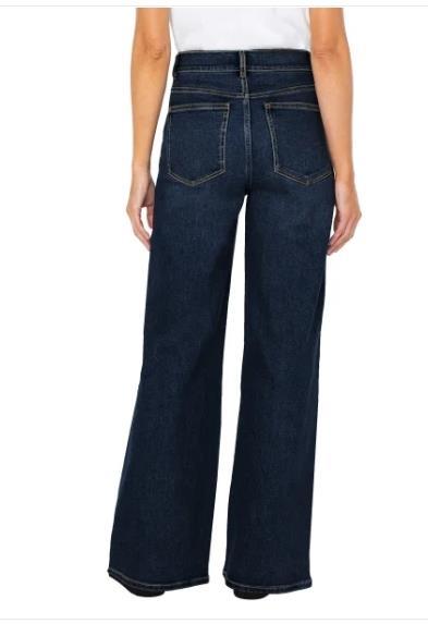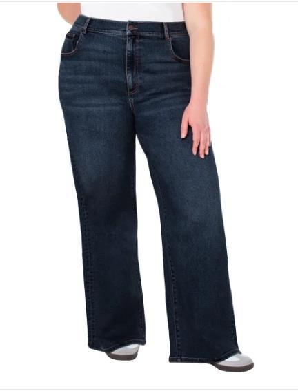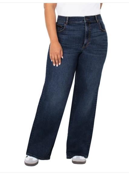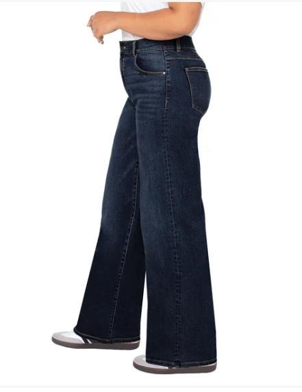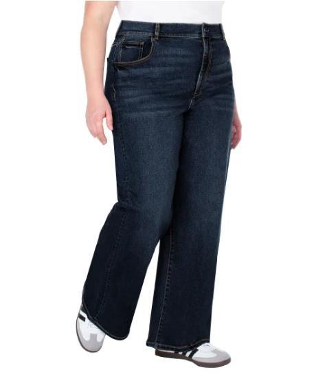 Well Worn Womens Jeans Dark Blue Wide Leg High-Rise Stretch 5-Pocket Comfort