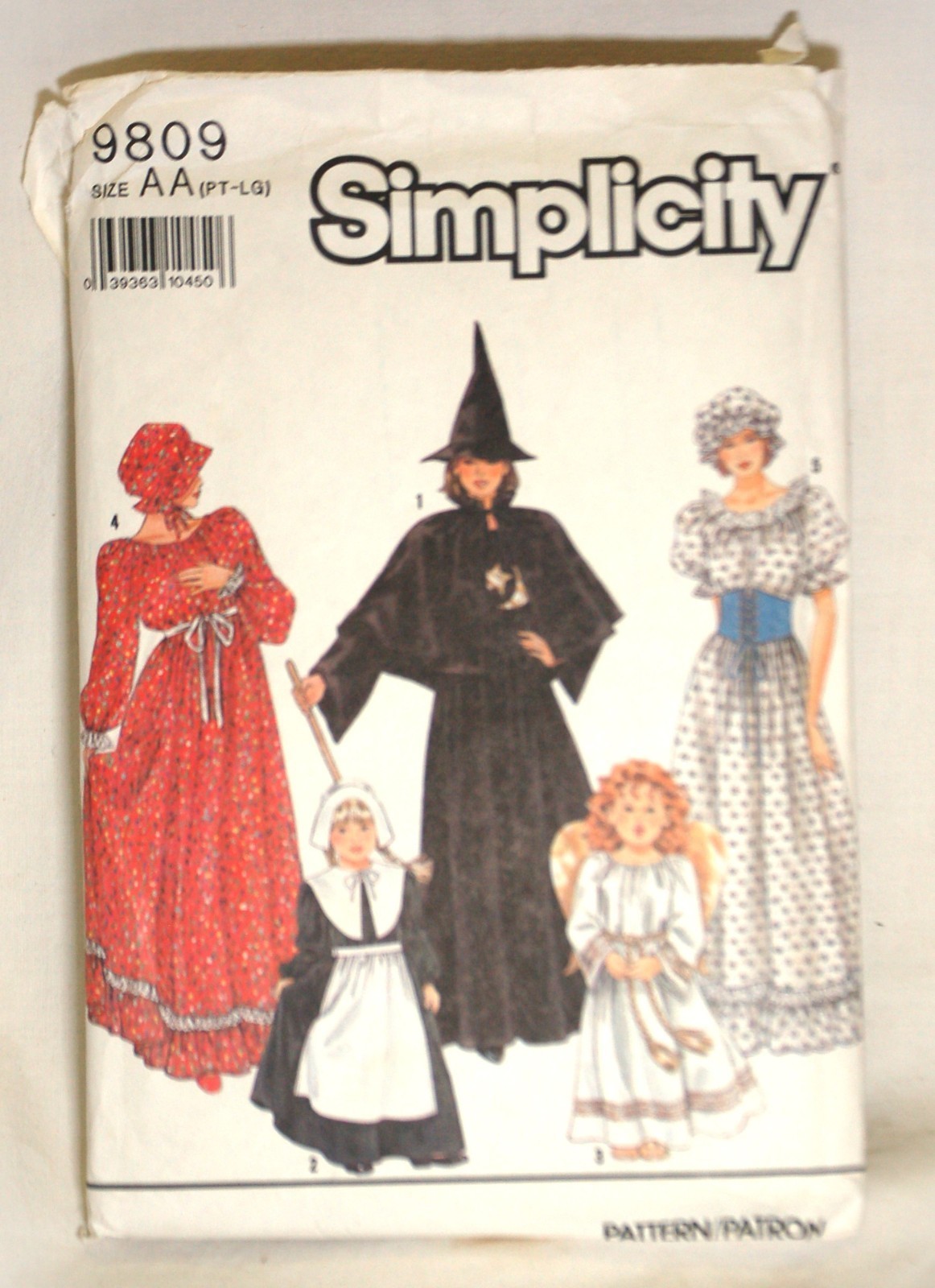 Simplicity Angel Witch Pilgrim Costume Pattern 9809 Size AA PT-LG