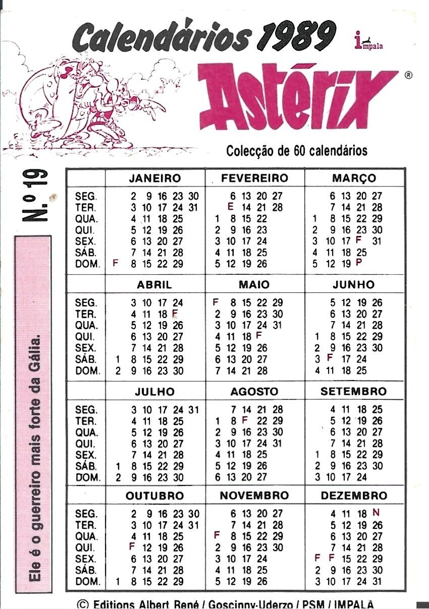 ⭕vtg, pocket calendar 1989 Comic Asterix Obelix Astérix 19 impala