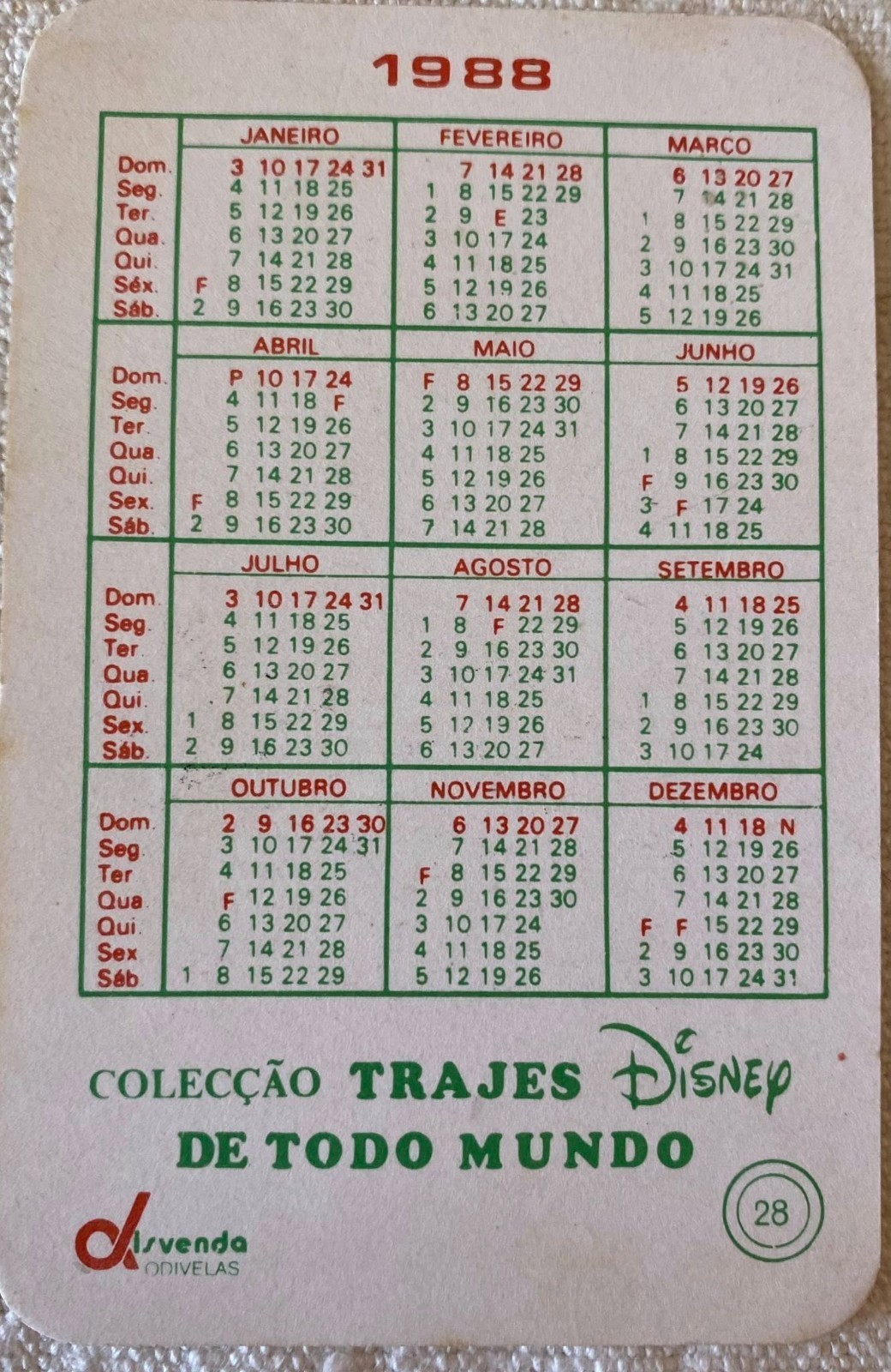 ⭕VTG pocket calendar 1988 WALT DISNEY COSTUMES FROM AROUND THE WORLD ROMANIA