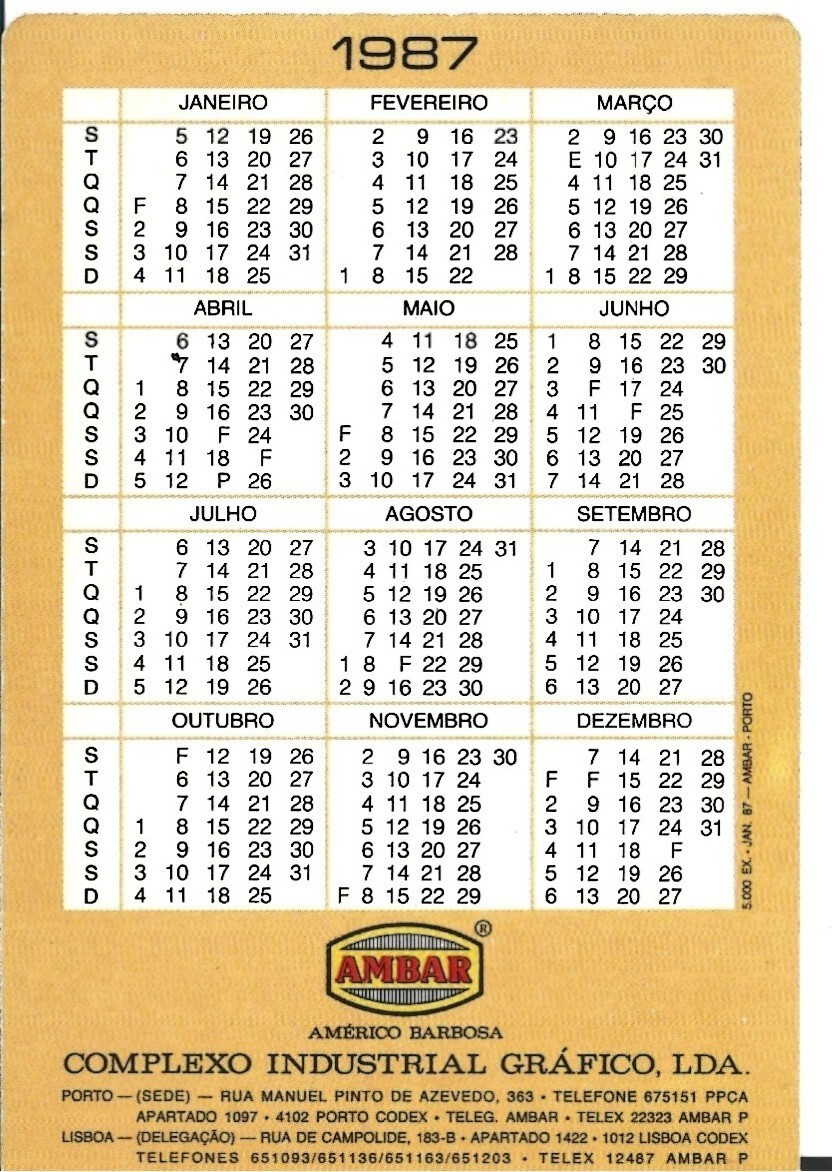 Pocket calendar used em estado excelente (sem manchas, sem dobras):