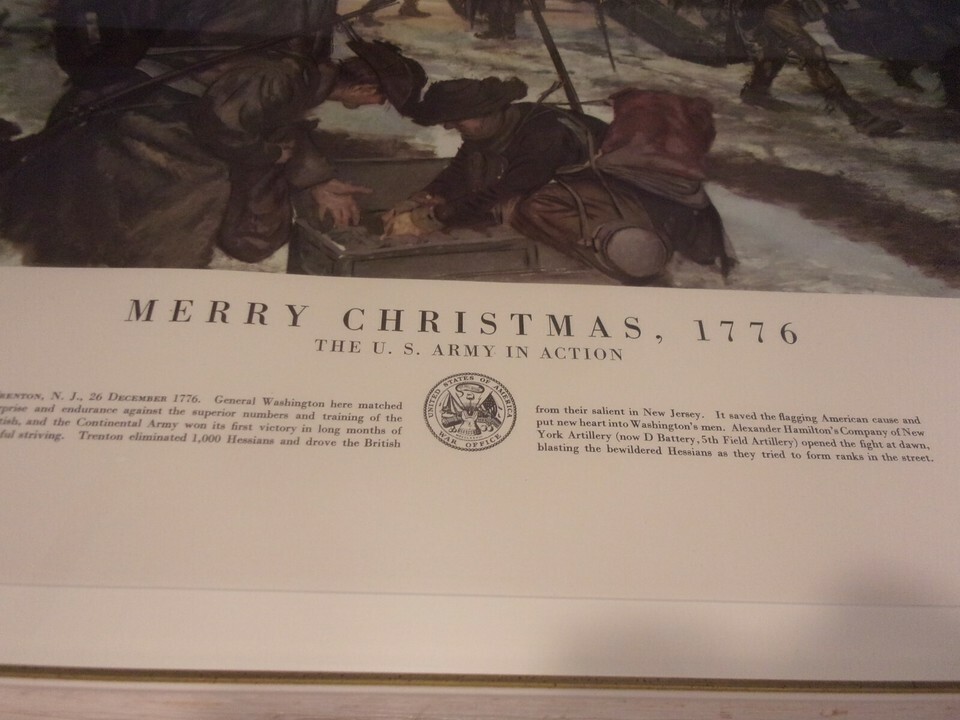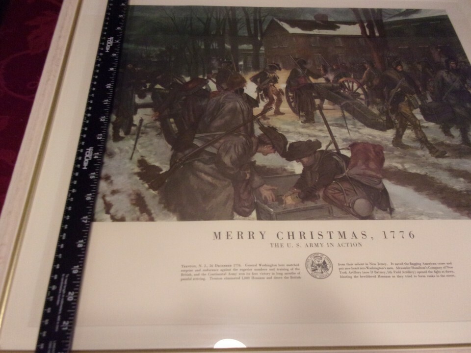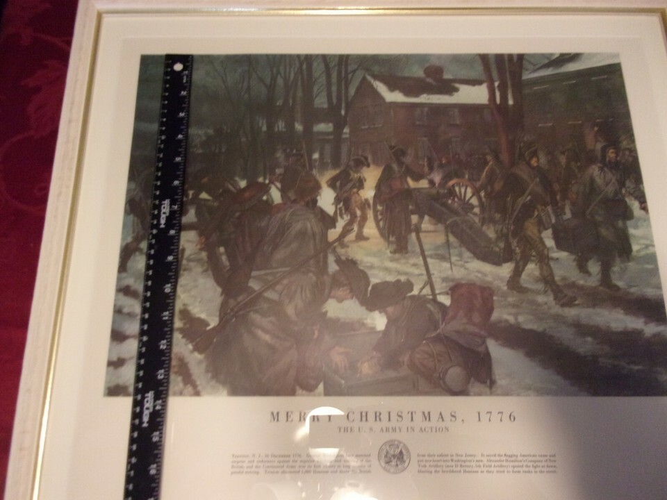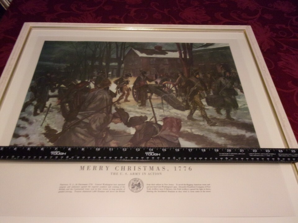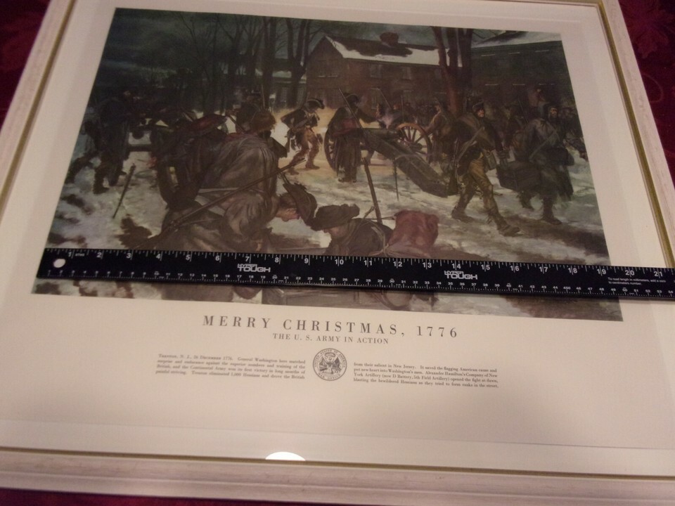 US ARMY MERRY CHIRSTMAS 1776 PRINT IN WHITE WOODEN GLASS FRAME FRAMED 23"X 26"