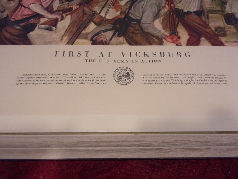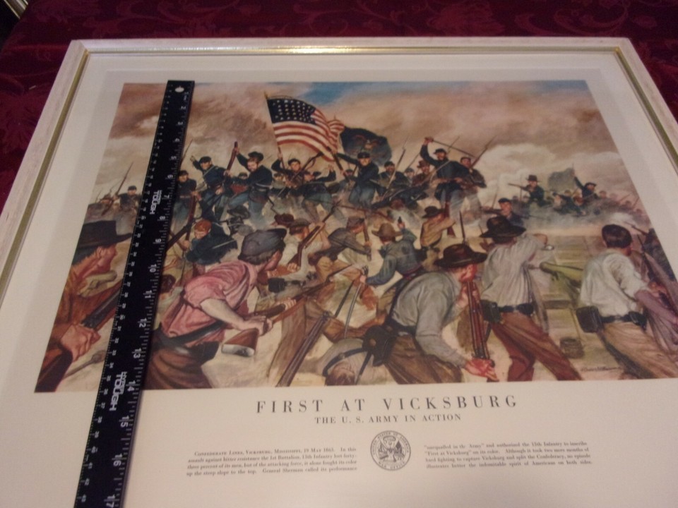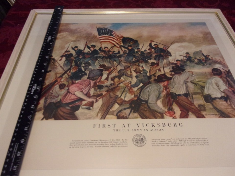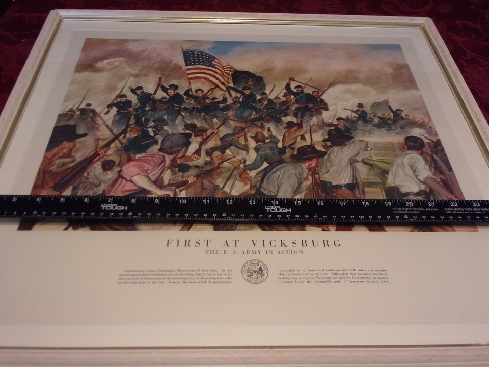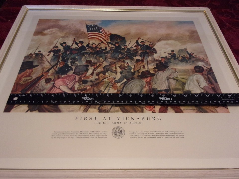 FIRST AT VICKSBURG US ARMY IN ACTION PRINT IN WHITE WOODEN FRAME FRAMED 23"X26"