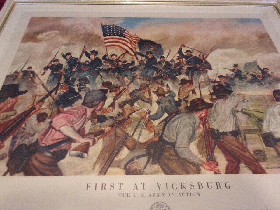 BEAUTIFUL ILLUSTRATION OF FIRST AT VICKSBURG THE ARMY IN ACTION IN WEATHERED WHITE FRAME
