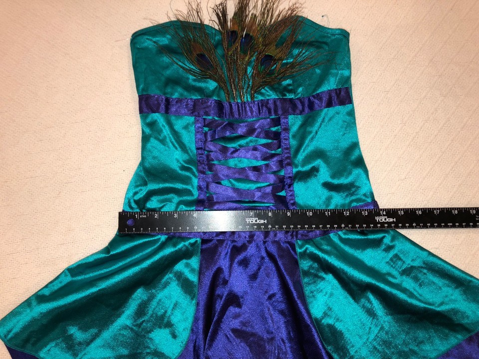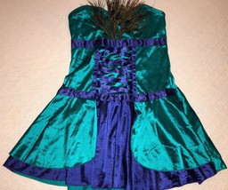 NAUGHTY SEXY HALLOWEEN COSPLAY WOMENS GREEN SHORT SEXY LAS VEGAS PEACOCK DRESS