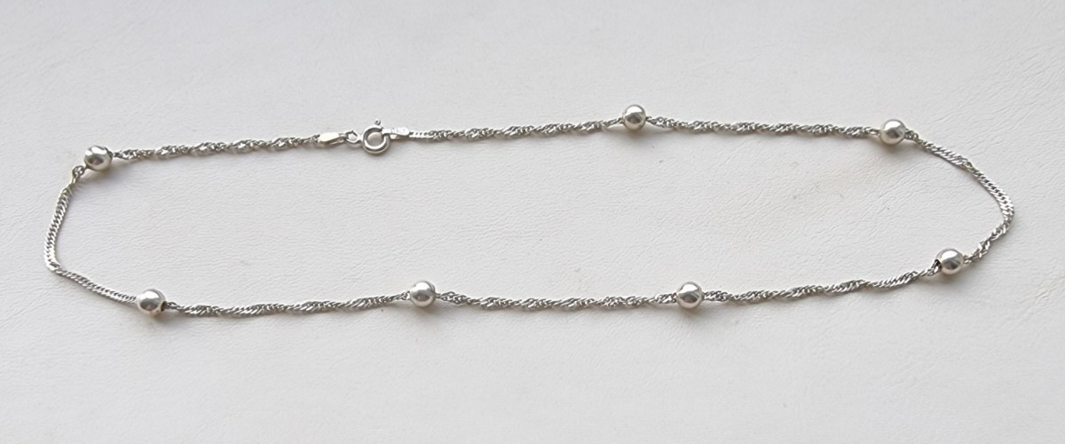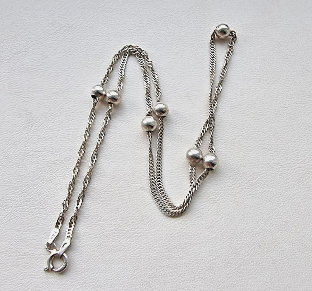 FAS ITALIAN 925 STERLING SILVER 5 mm BEAD BALL TWISTED CHAIN LINK NECKLACE 16 "