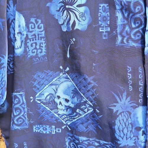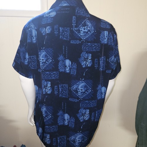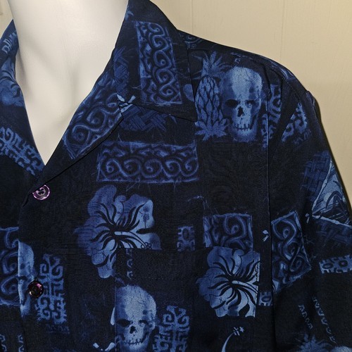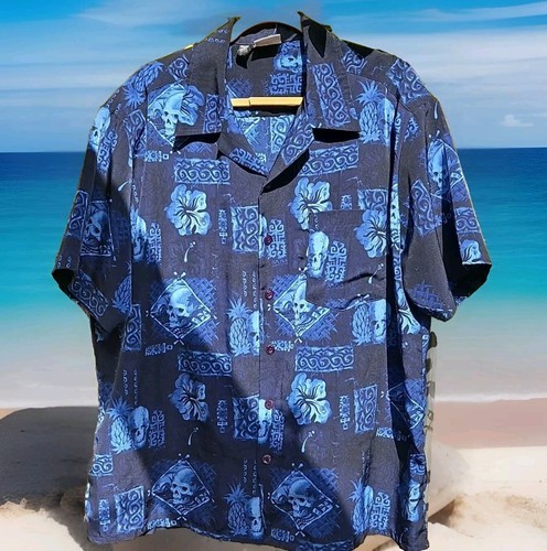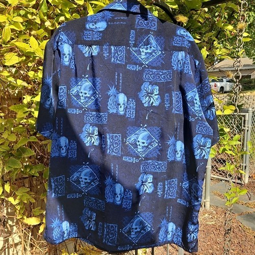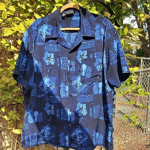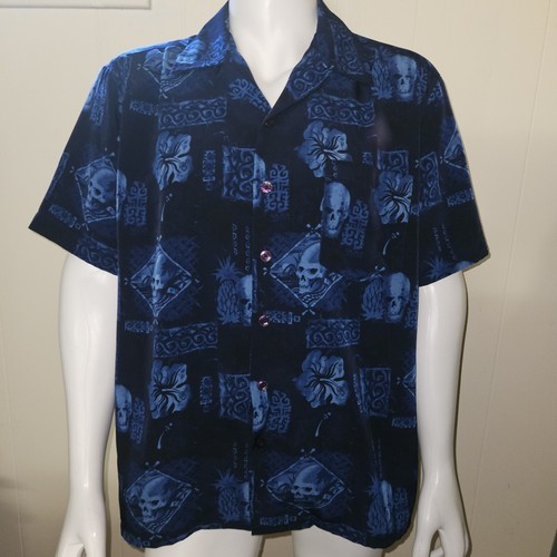 Vintage Hawaiian Shirt Men's Size XL Kennington Ltd. Blue Skull Print Button Up