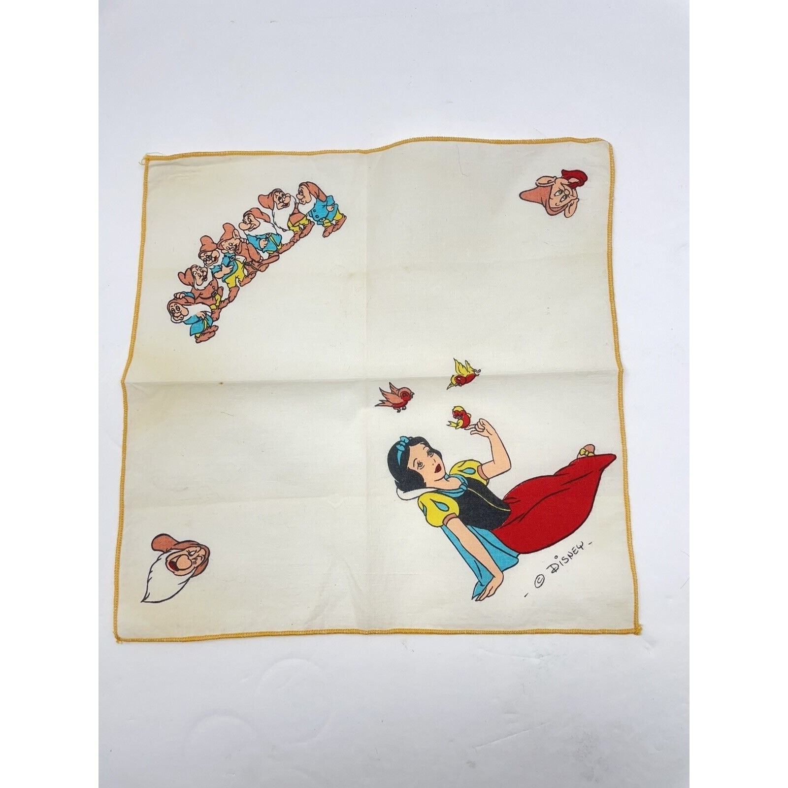 Snow White Handkerchief: Depicts Snow White and the Seven Dwarfs in a whimsical design, capturing the magic of the classic tale.