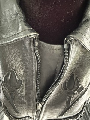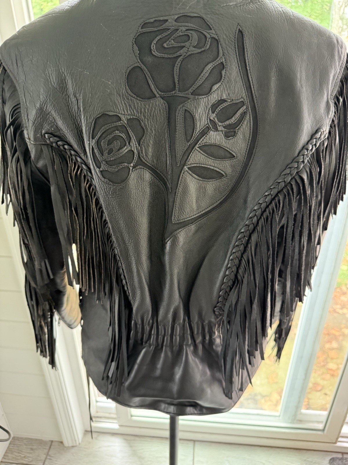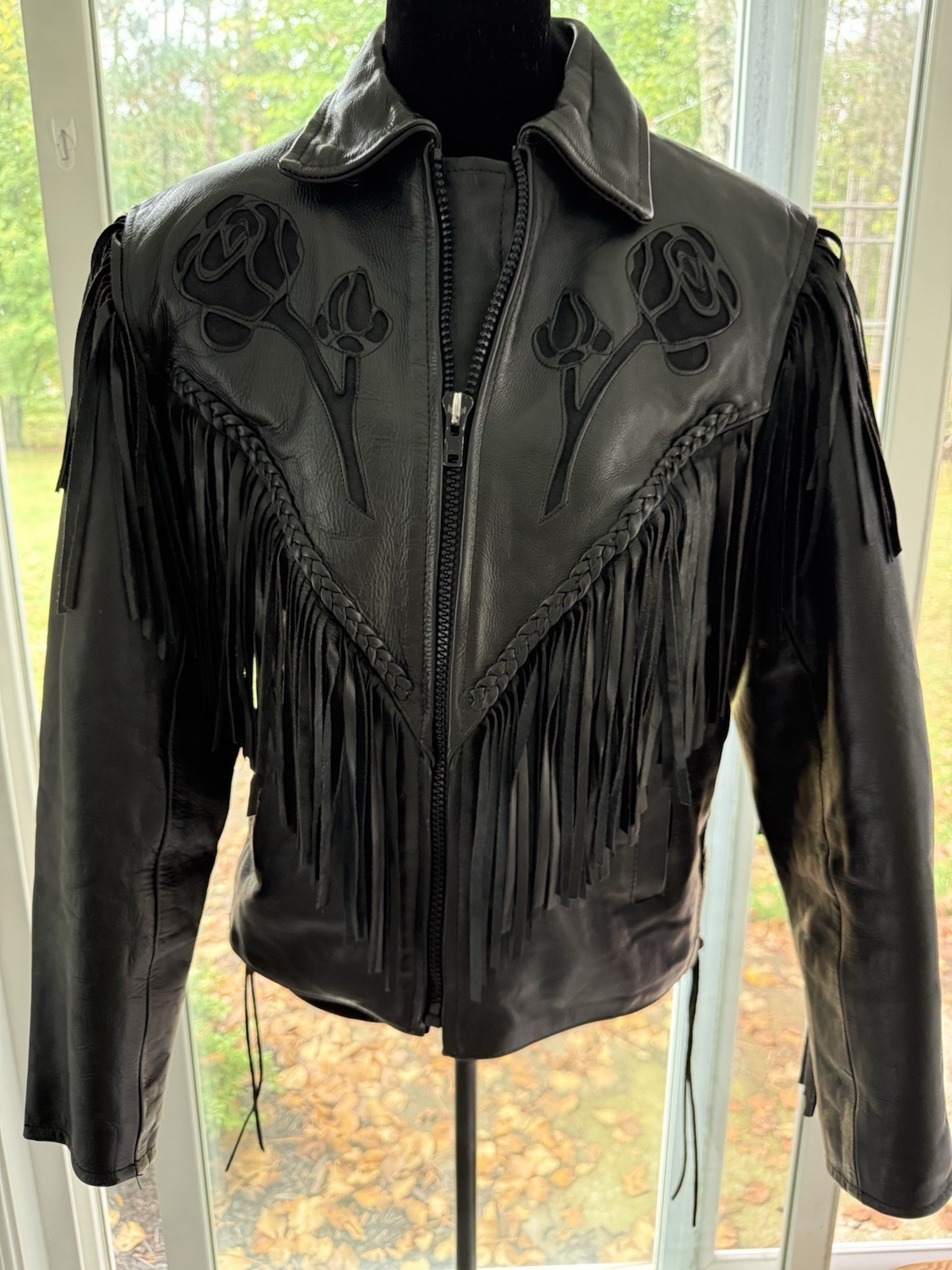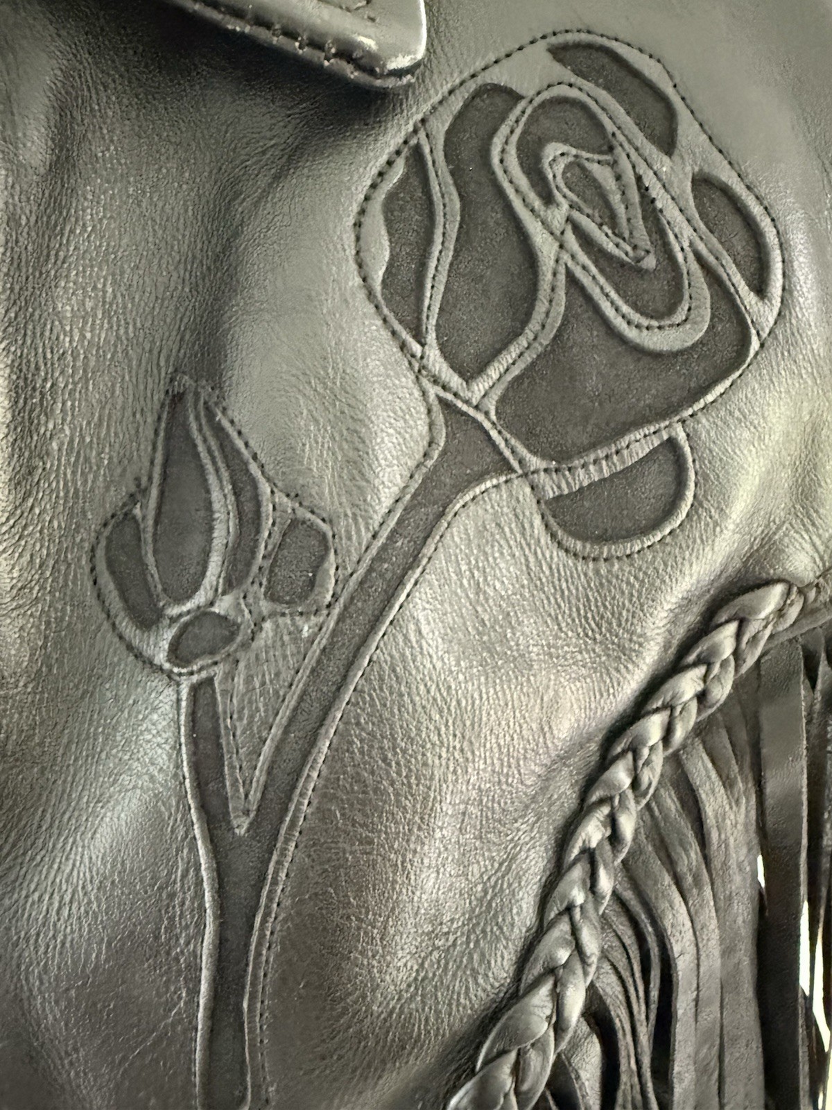 Shaf VTG Moto Womens Sz Medium Fringe Rose Braid Zip Lining Leather Jacket EUC!