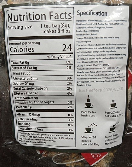 Natural Herbal Formula: 8 kinds of natural raw materials such as chrysanthemum, winter melon, orange peel, cassia seed, buckwheat, hawthorn, lotus leaf, red rose are scientifically matched, and every bite is a natural taste.