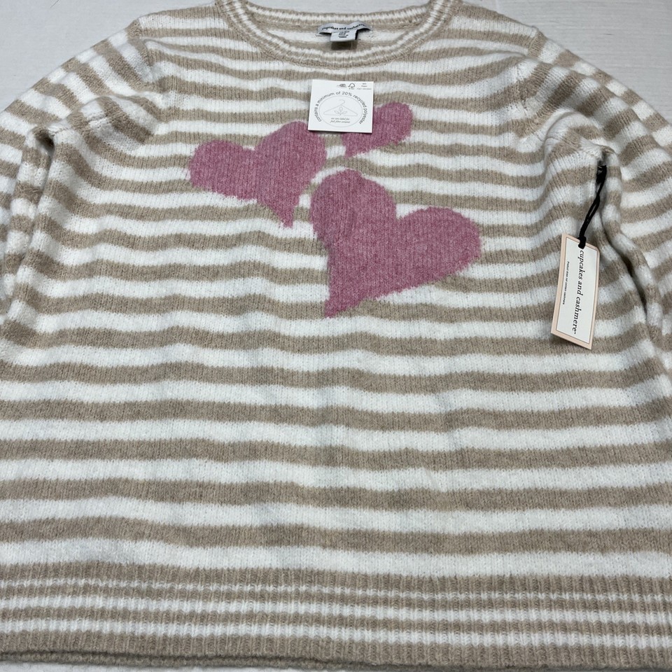 Cupcakes Cashmere Sweater Womens M Tan Cream Striped Hearts Pullover Soft