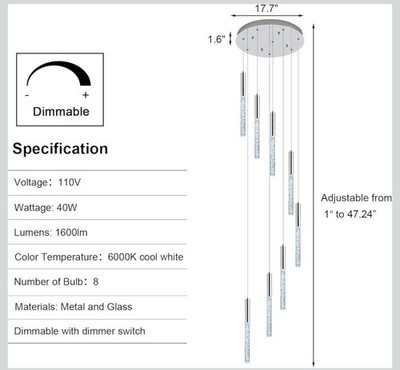 8-Light LED Pendant Lights Kitchen Island Crystal Bubble Chrome Free Shipping
