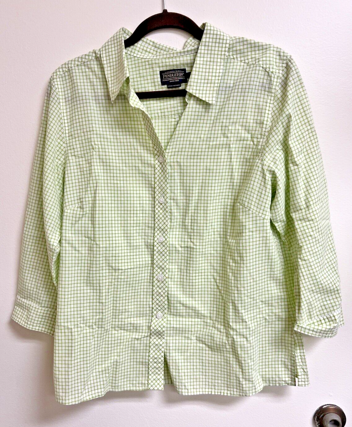 Pendleton Bright Green White Gingham Shirt Blouce Women's Cotton Shirt SZ L