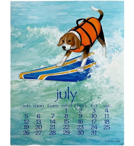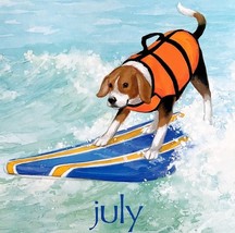 Beagle Surfing July Dog Days Poster Calendar 14 x 11" Art Erica Leigh DWDDCal