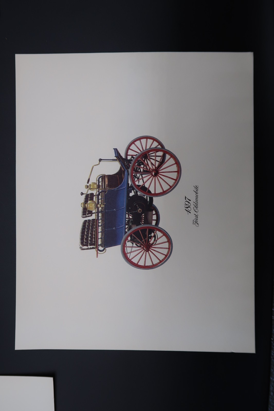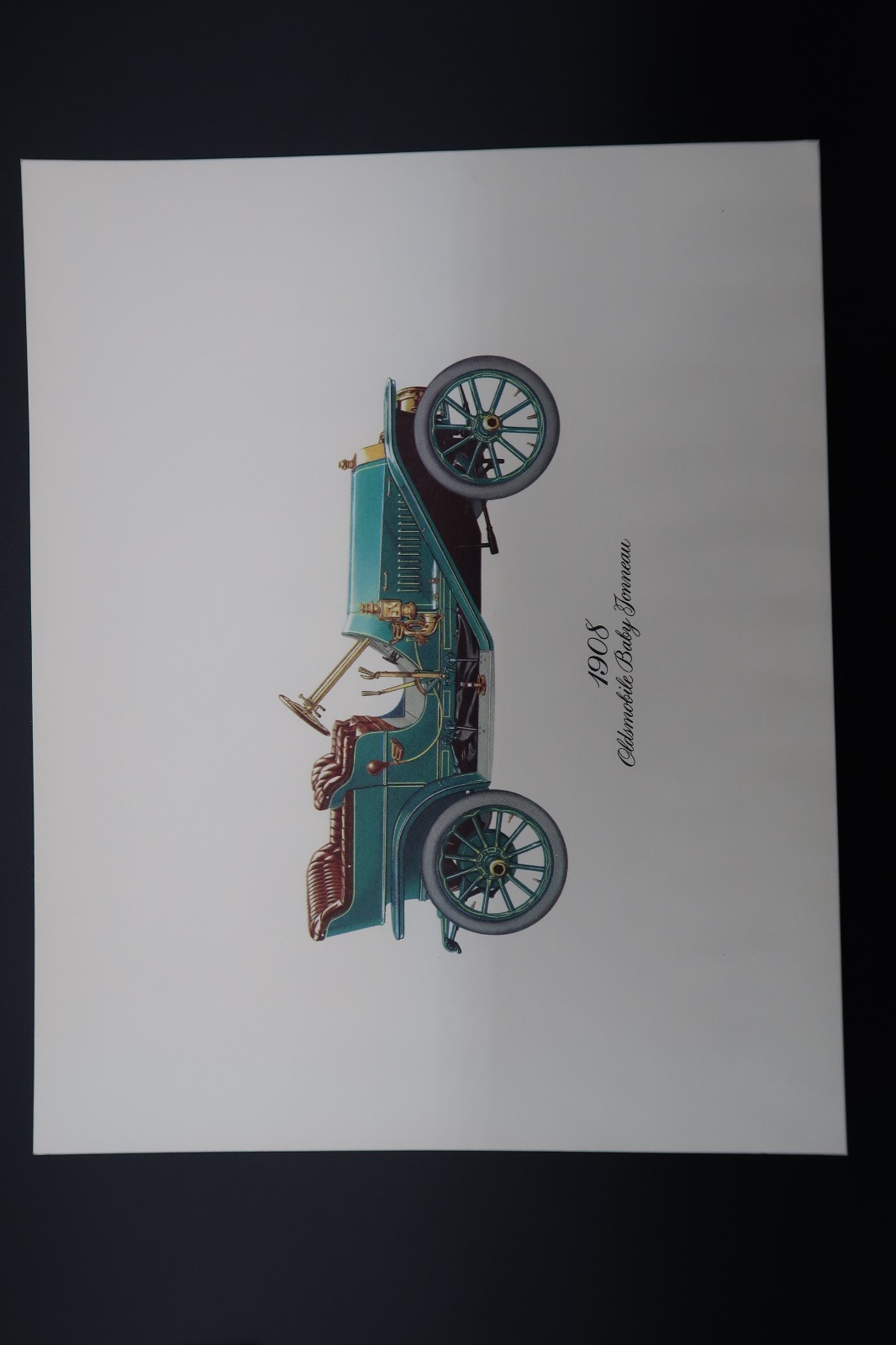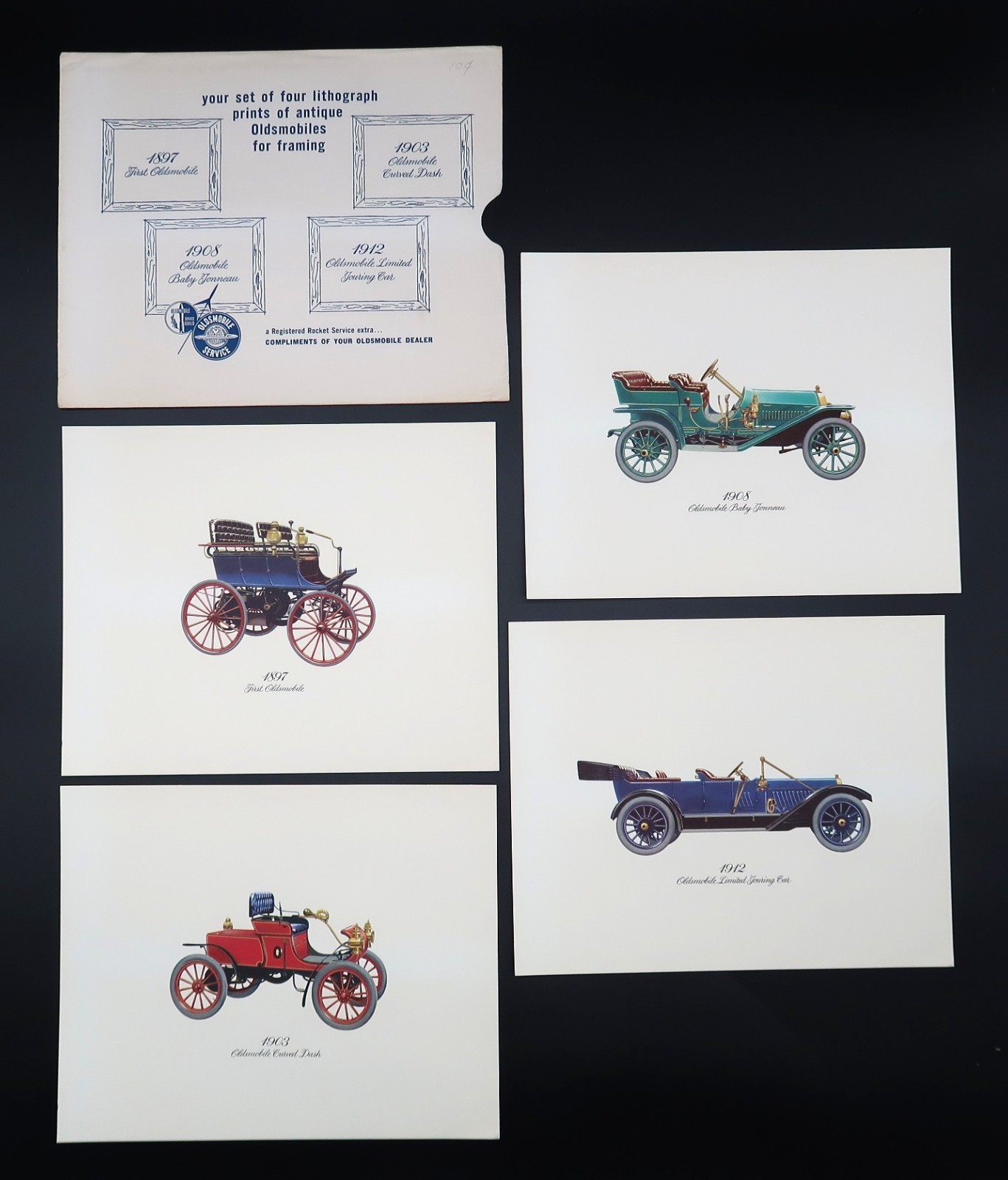 Vtg 1950's Oldsmobile Dealer Lithograph Antique Cars Set Of 4 Original Envelope