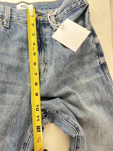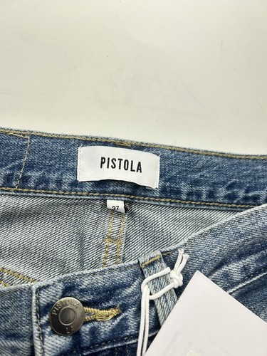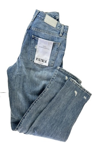 PISTOLA Womens Jeans PRESLEY. These stylish jeans feature a solid pattern with a light fabric wash, made with a cotton blend material and denim fabric type. With a high rise fit and relaxed style, they are comfortable to wear and perfect for any occasion. The jeans come in a beautiful blue color and have a waist size of 27, inseam of 29, and size type of regular. The jeans also have a straight style and distressed features that add to their charm. Perfect for women who want to look stylish and feel comfortable, these jeans are a must-have.