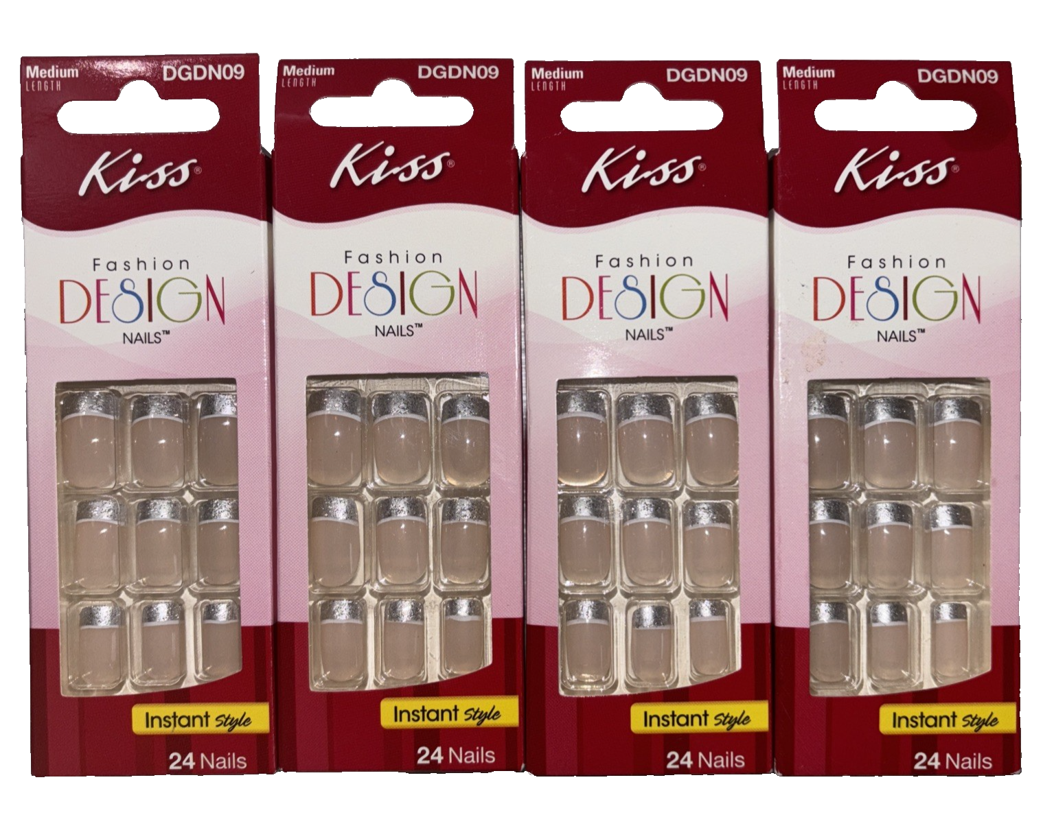 KISS Fashion Design Nails Silver French Design Medium Length STYLISH DGDN09 Lot
