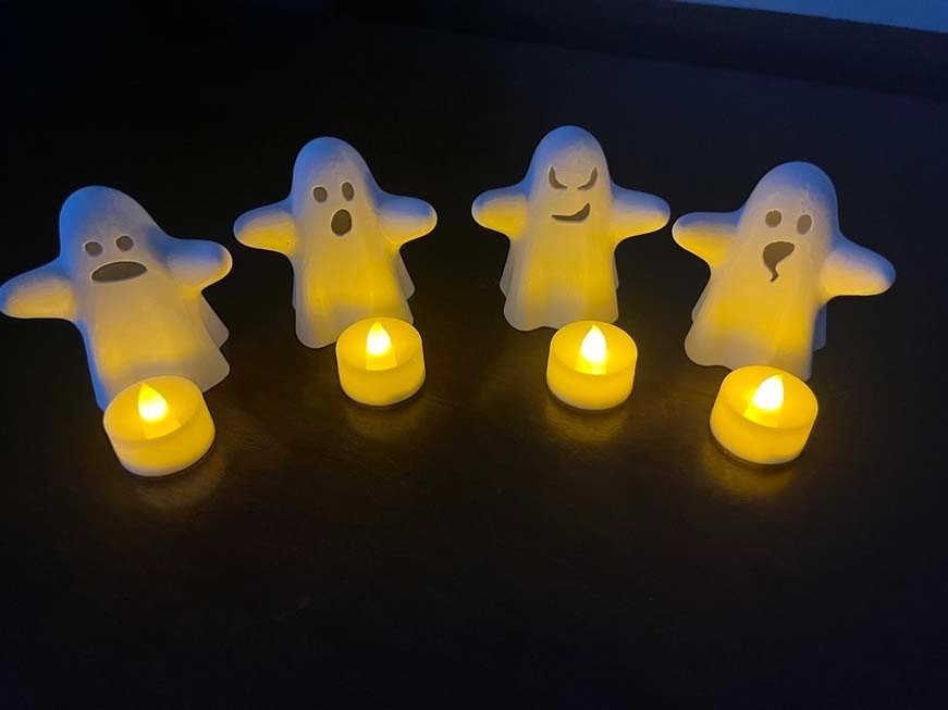 Halloween Tealight Ghosts - Spooky Halloween Decor - 3D Printed Set of 4