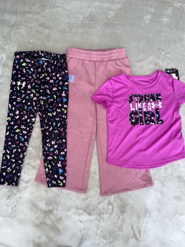 LOT of Girl's 1 Under Armour Graphic T-Shirt 3t & 2 Under Armour Pants 3t