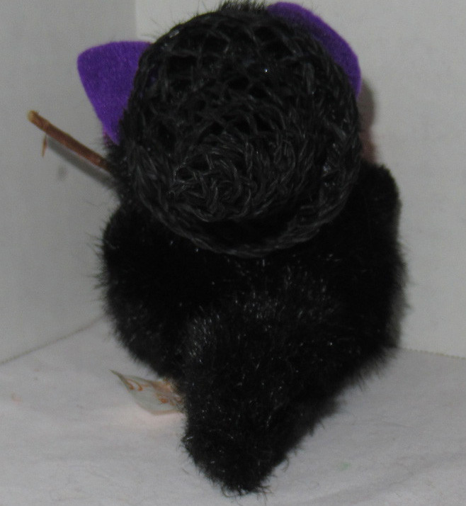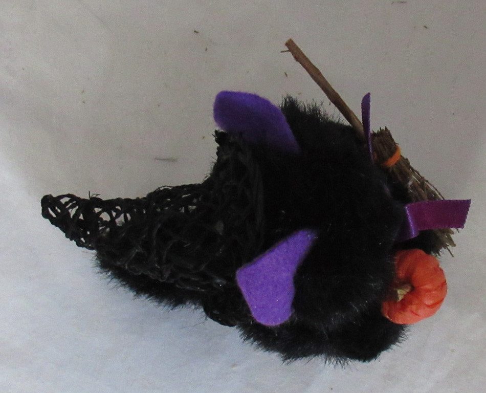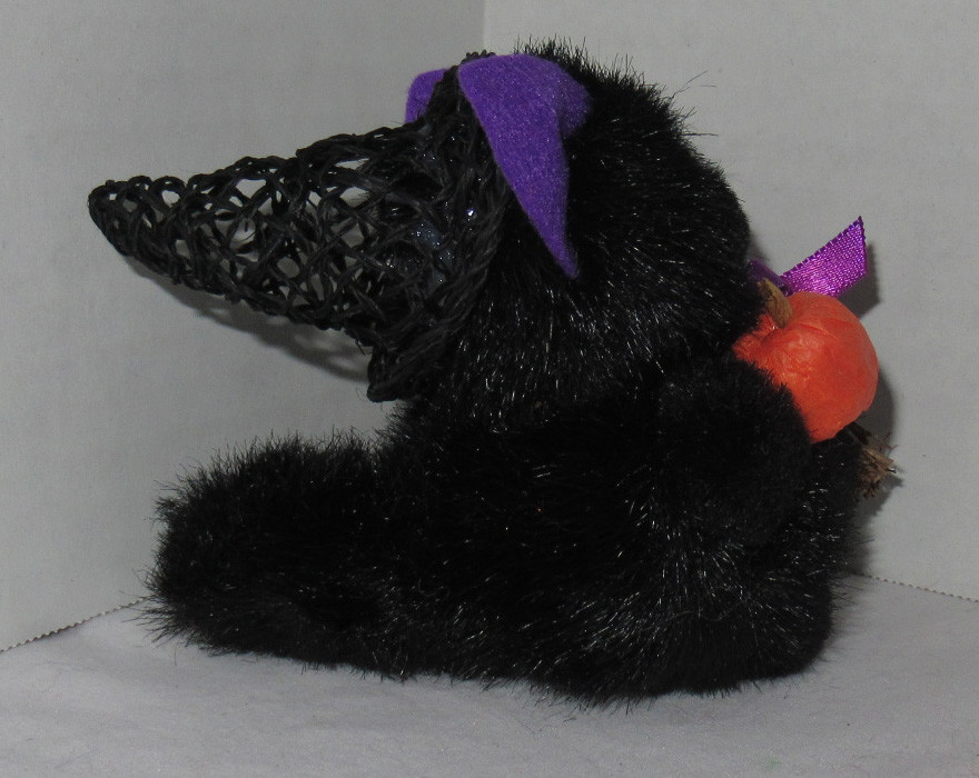 Russ Berrie Halloween ITTY BITTY CAT black kitten 6 1/2" Witch hat broom pumpkin