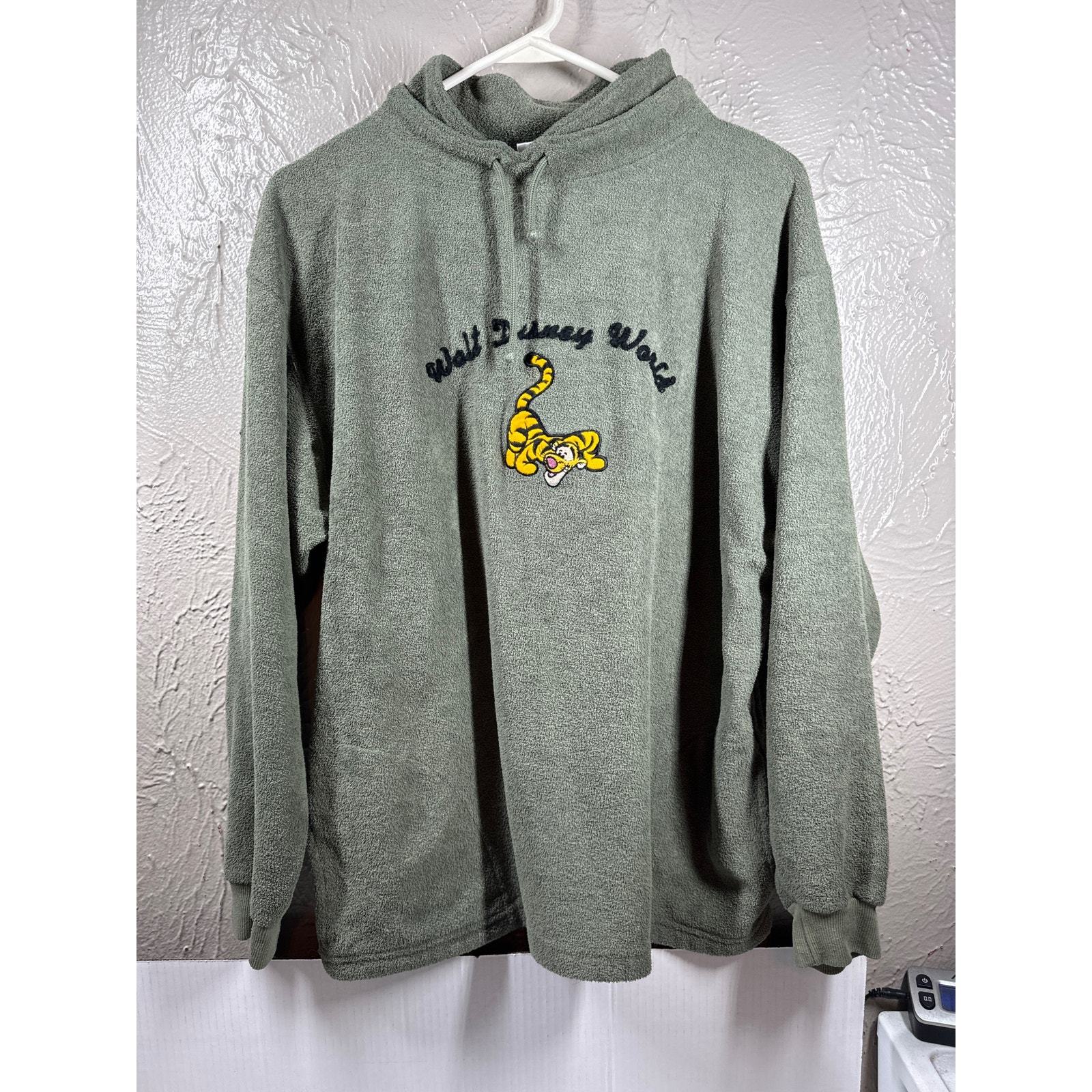 VTG Disney Sweater Mens Green Tigger Fleece Pullover Pockets USA Size Medium
