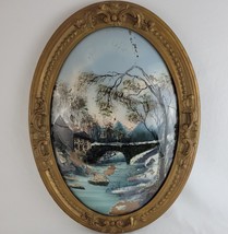 Antique Gilded Frame Oval Wood Bubble Glass Carved Gesso Convex Ornate Picture