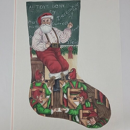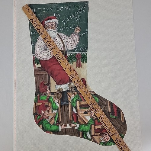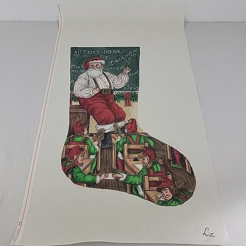 Handpainted Needlepoint Canvas Teach Santa XMAS Stocking Liz Goodrick Dillon 24"