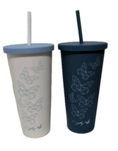 2X Dolly Parton Butterfly 20 oz Tumbler Blue Lid Straw DG Exclusive NEW