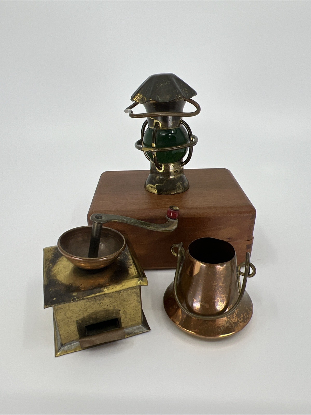 VTNG Copper Brass Figurines Miniature Lot Coffee Grinder Pot Lantern