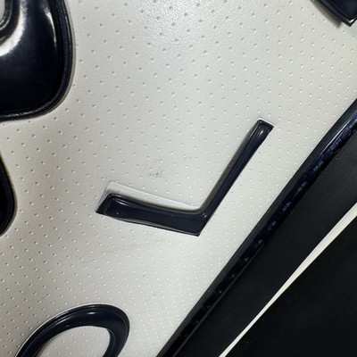 The bag is used and has some marks here and there. On one of the sides the small "L" "F" letters of the GOLF spell out need to be glued down as they have come loose as shown up close in the photos. Includes the rain cover as shown. See pictures for more details.