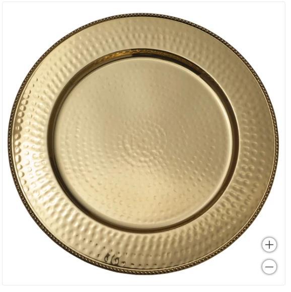 This Mikasa Set of 4 Stainless Steel Charger Plates is perfect for bringing a touch of sophisticated style to table settings. Available in a lustrous gold or classic silver finish stainless steel with a hammered texture and delicate, beaded edge, they pair perfectly with all kinds of tableware. The premium stainless steel construction stands up to daily use, making them great for both formal occasions and everyday dining.