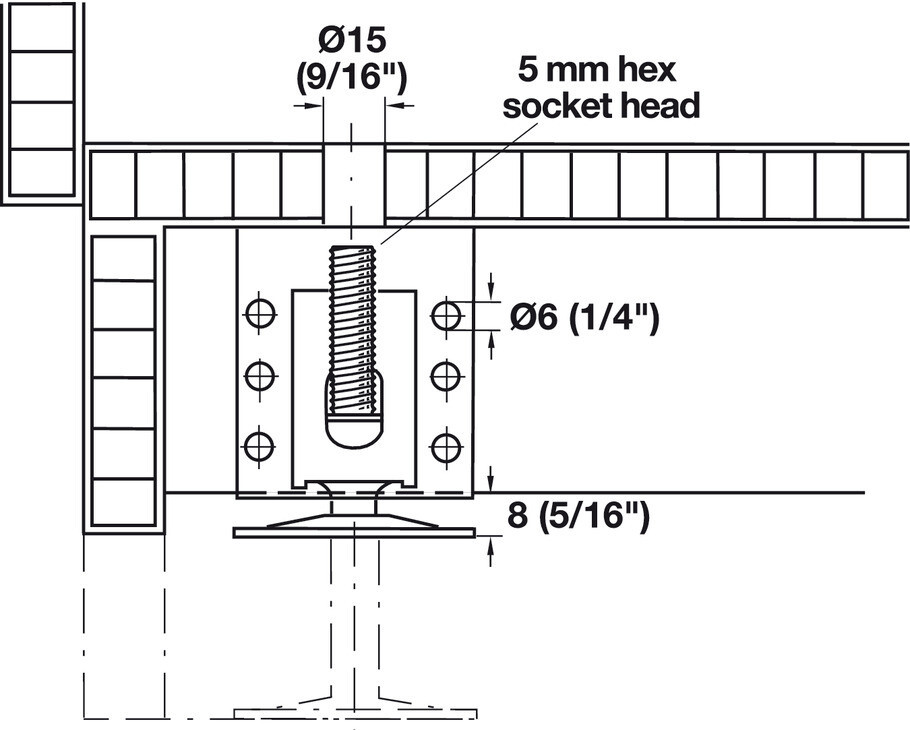 M12 x 65 (2 9/16?) bolt with M5 mm hexagonal socket head