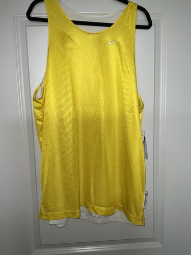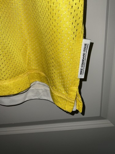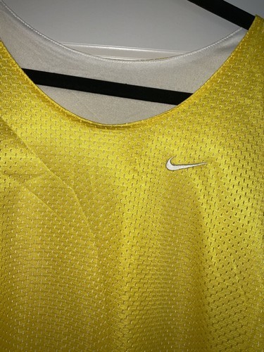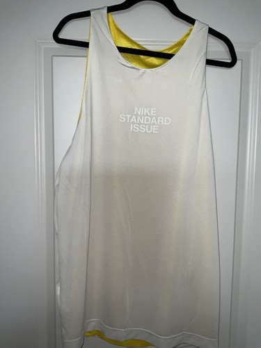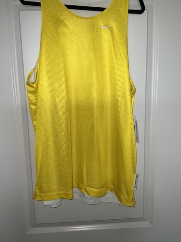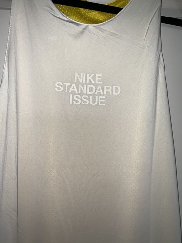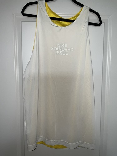 Elevate your basketball game with the Nike Standard Issue Reversible Basketball Jersey in size Large. This breathable and comfortable sleeveless top features a solid yellow and white design, with a pull over closure for easy wear. Perfect for running and basketball activities, this base layer top is made of 100% polyester and is machine washable for convenience.